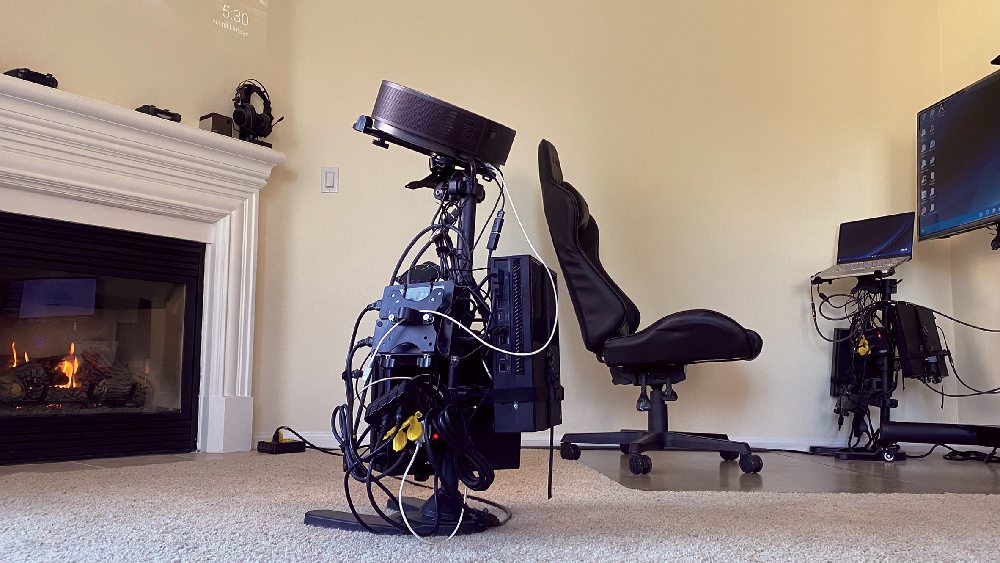 Adapt your gaming tech to any room by not using a desk at all. A rolling TV stand such as the one in this picture can be used as an alternative to a desk, or even an entertainment center. Most TV stands like this are compatible with media trays that can be installed optionally. They can also be purchased separately. Because the stand can roll, it makes for an ideal way to play augmented reality games that require more open space.